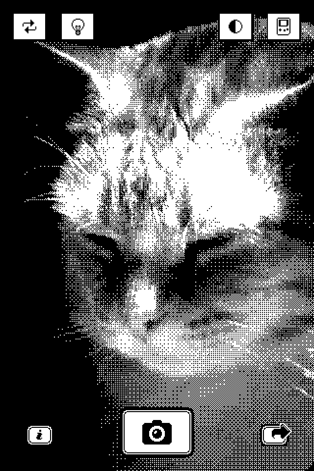 Nintendo® Gameboy® Camera embedded in a true-to-the-source user interface, 1-BIT CAMERA provides the most immersive classic computer photography experience yet seen on the iPhone. Wow!